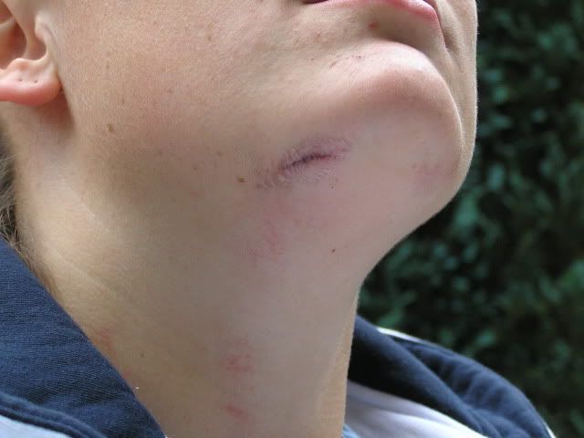 Het gaat naar omstandigheden goed met me, ik ben nog wel duizelig, bont en blauw en heb een mooie aandenken onderaan mijn kin in de vorm van een snee.