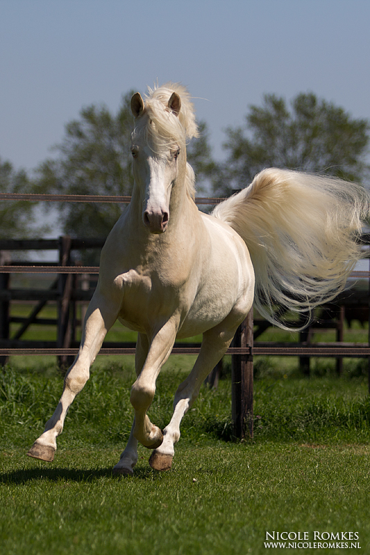 Schitterende goedgekeurde Cremello D-ponyhengst. Afstammend van de beste bloedlijnen van NL en Duitsland.