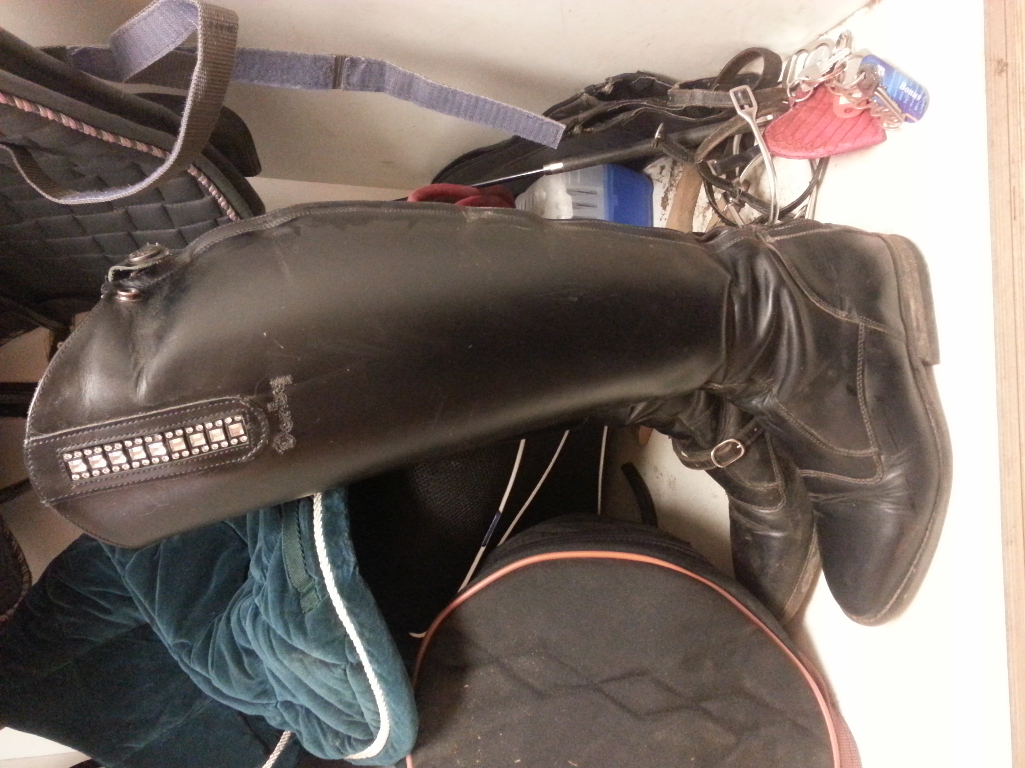 Mooie zwarte derby laarzen met hoge dressuurboog opgeleukt met swarovski steentjes.