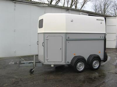 Trailer is voorzien van polyester kap, rubber tussenschot, hengstenrek, zadelkamer en voerbakken.