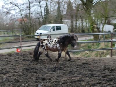 hij is 1.05 hoog hij is zeer sociaal tegen andere paarden