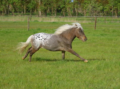 Spotted Perfection is een 4 jarige Silverbay Appaloosa hengst van 99cm hoog welke goedgekeurd is bij het NMPRS met een 2e premie waardoor hij onbeperkt mag dekken voor het stamboek. Spot heeft een zeer goed karakter en je kunt er een klein kind mee weg sturen. Voor de kar is het echt een plaatje en laat hij zich goed bewerken en is hij ook goed verkeersmak.