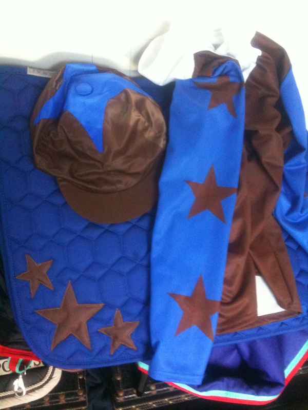 Eventing set, bestaande uit een blauw dekje, full vzh en hebben we zelf bruine sterren netjes op gemaakt aan de rechterkant. (links ruimte voor reclame bijv)
