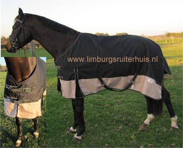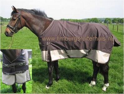 Profi-rider Regendeken/Outdoordeken fleece gevoerd staartflap loopsplit snelsluitingen beenriemen ripstop waterdicht-winddicht-ademend getapete naden (Bruin/Beige, Blauw/Beige, Zwart/Beige 105/155, 115/165, 125/175, 135/185, 145/195, 155/205, 165/215) Normaal €89,95 nu €44,95