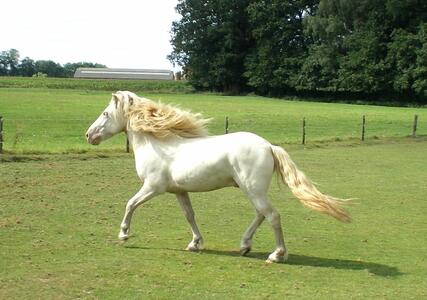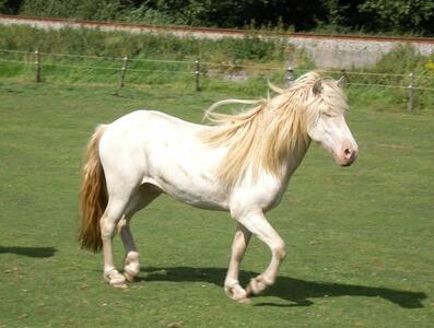 Te koop voor de echte liefhebber: Kjeld, een 3 jarige ruin, kruising met 75% IJslander en 25 % Fries bloed, in de unieke kleur perlino met mega langen manen en staart.