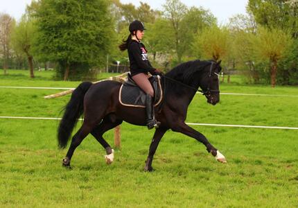 Hij is een super brave alleskunner wat rastypisch is. Wordt op dit moment opgeleid voor dressuurwedstrijden in Nederland.