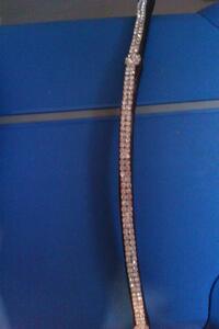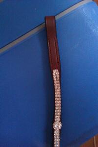 Prachtige frontriem met cognac leer met 2 rijen swarovski stenen.