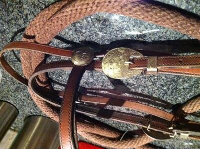 Daarbij een zadelhoes, 2 western pads, singel, houten stijgbeugels maar ook schitterende bewerkte aluminium stijgbeugels,en een mooi western hoofdstel(zonder teugels)
