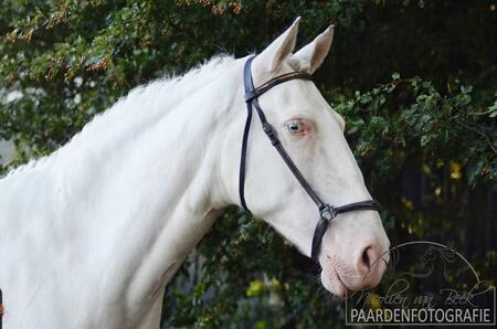 Ze is 155 hoog en goed ontwikkeld, heeft mooie gangen (zonder maaien). Zeer braaf onder het zadel in de bak en langs de weg, wordt momenteel door 13 jarig meisje gereden. Altijd gezond geweest, nooit kreupel. Volledig gevaccineerd, braaf te laden en bij de hoefsmid.