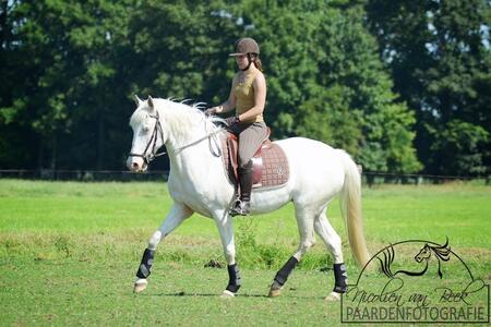 Prachtige goed bewegende 5 jarige Lusitano merrie. Zelf als jaarling vanuit Portugal geimporteerd. Vorig jaar zomer ingereden, van de winter stil gestaan en nu weer in training voor de Nederlandse Lusitano keuring in september te Ermelo.