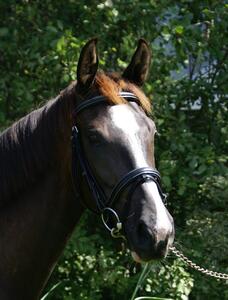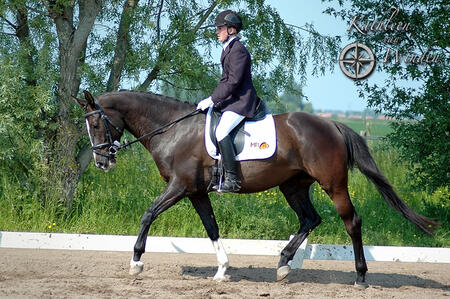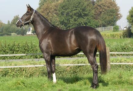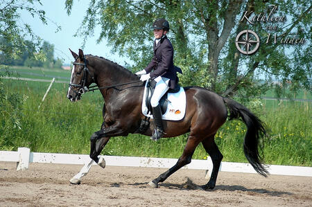 Bij deze bied ik mijn zelf gefokte en opgeleidde 4 jarige donkerbruine merrie te koop aan. (Maestro x Metall).