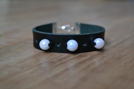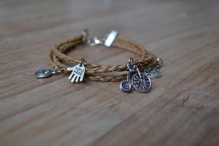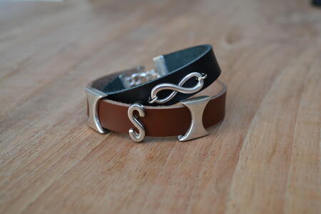 Armbandjes van leer, gecombineerd met bedels en suède.
