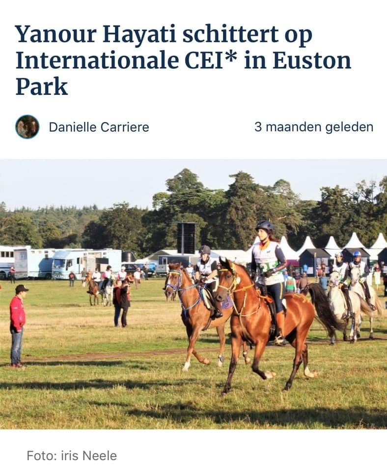 Dat schoonheid en prestatie in de sport goed samen gaan bewijst Yanour keer op keer. Met zijn hoogbenige, correcte beenwerk en goede voeten, zijn sterke body en topline en fraai gevormde lange hals is hij een opvallende en luxe verschijning op het Endurance terrein. Sinds 2016 maakt Yanour deel uit van het internationale ASE Endurance Team en is Endurance klasse IV (120-160 km) en internationaal Endurance CEI++ (120-139 km) gekwalificeerd (FEI).