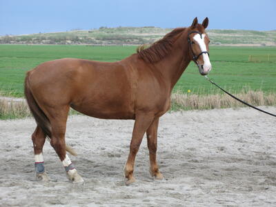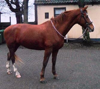 Merrie, geboren 16-05-2006, is heel vriendelijk, werkwillig en gaat door het vuur voor degene die ze vertrouwt. Is verkeersmak met klein verkeer (nog niet met groot verkeer/tractoren). Is met +/- 4 jaar ingereden en sindsdien basisdressuur/recreatief mee gereden. Ze vindt het leuk om een sprongetje te maken, maar heeft dit nog niet veel gedaan. Merrie is goed geschikt voor de doortastende ruiter, maar met goede begeleiding ook zeker geschikt voor de beginnende ruiter.