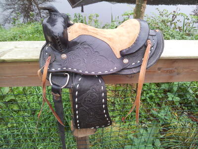 Te koop. Mooi westernzadel voor shetlanders rond 1 meter! voor mijn shet van 87 cm is het zadel net te groot helaas. Doe een.leuk bod vanaf 40 euro en zadel is voor jou.