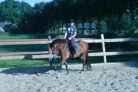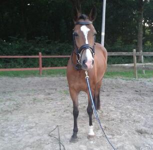 Ze is een hele lieve merrie met aanleg voor de springsport maar dressuur doet ze ook erg goed. Met springen is ze lekker voorwaarts en springt met gemak 80/90 cm (div oefenparcoursen gedaan), ze is dan ook concours klaar, wij zouden in het voorjaar met haar starten maar door omstandigheden gaat dit bij ons niet meer lukken. 2 jaar geleden heeft ze B dressuur met winstpunten gelopen. Buitenritten vindt ze erg leuk en ze is verkeersmak.