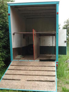De vrachtwagen wordt verkocht omdat het paard verhuisd is naar een omgeving met veel uitrijdmogelijkheden, dus te weinig wordt gebruikt.
