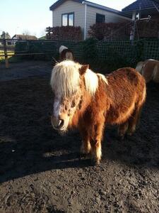 het is een heerlijke pony die geniet van een poetsbeurt gek is op knuffels.