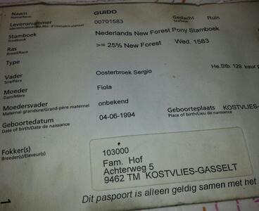 | Stamboekpapier: | |