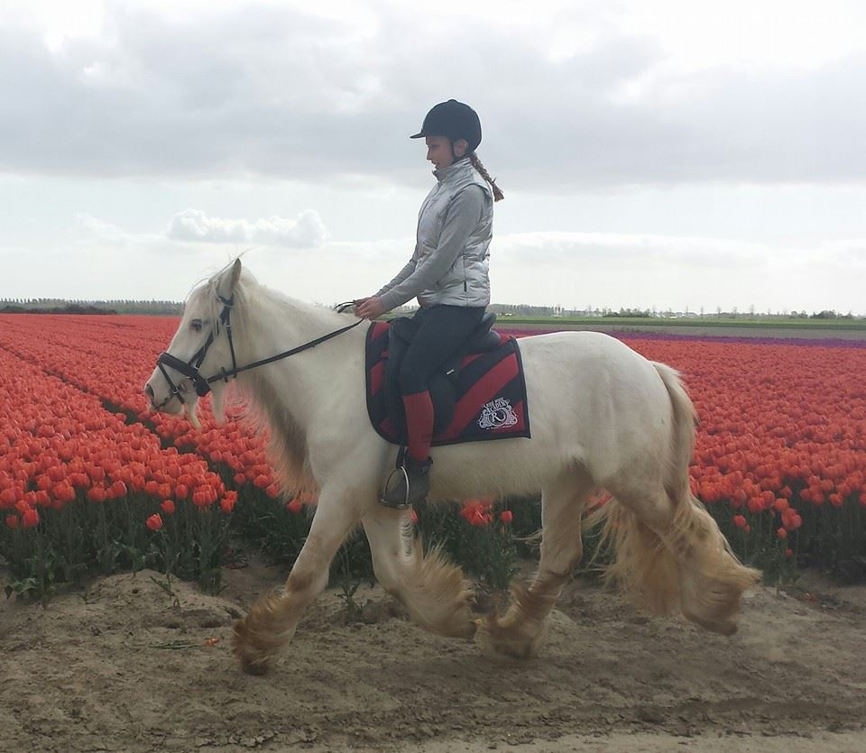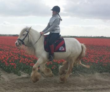 Werkelijk super brave en rustige 3 jarige irish cob merrie. Ulicia heeft als 2 jarige bij de 3 en 4 jarige merrie een eerste premie gekregen en was eerste in haar klasse. Ze ging de oudere merries voorbij met haar prachtige looks. Deze merrie heeft het allemaal, bouw, sokken, manen, staart en boven al een steengoed karakter. Ulicia is overal aan gewent, kent alles van wassen tot verkeer. Ze is meerdere keren meegeweest op buitenrit als handpaard en kijkt nergens naar. Dorp, verkeer, groot verkeer, allemaal niet het opkijken waard. Ulicia is gelongeerd en is inmiddels de eerste twee keren onder het zadel geweest. Zoals je kunt zien op de foto's was de tweede keer onder het zadel mee op buitenrit en ze heeft geen stap verkeerd gezet. Zeldzaam braaf en makkelijk dier! Helaas kunnen we haar door drukte op stal niet aanhouden, er is te weinig tijd voor haar.... Het is eventueel ook mogelijk haar hier op stal te leasen. Licia is kleur getest Bay sabino