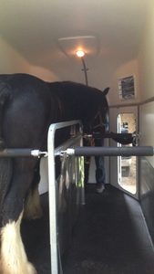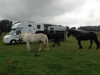 Wij rijden zowel met een 2 paards vrachtwagen met een 2 paards ruime xxl trailer daarachter , en eventueel met een toyota tundra met een hoge ruime 2 paards trailer daar achter.