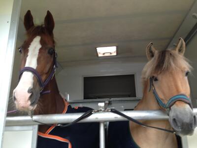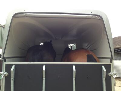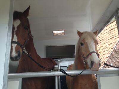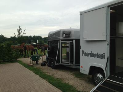 Eventueel mogelijk 2 paarden /pony's in wagen en menwagen mee mits deze in 2 paards trailer past.
