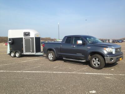 Grote paarden geen probleem deze worden vervoerd met een hoge ruime trailer en getrokken door de toyota tundra.