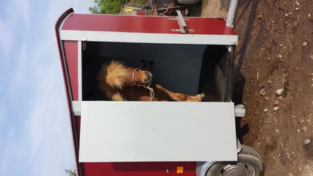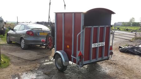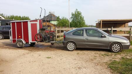 Te koop: Shetlandertrailer voor 1 grote shetlander of 2 mini-shetlanders met sulkyophangsysteem. Stevige en degelijke trailer geschikt voor B-rijbewijs.