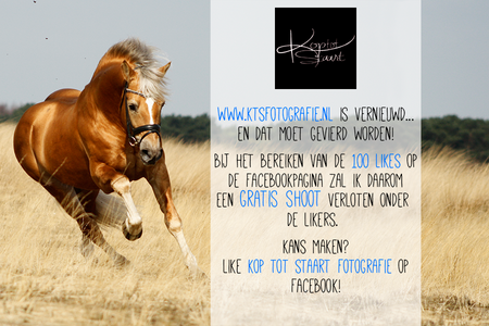 Wat moet je doen? Simpel! Gewoon de pagina Kop tot Staart Fotografie liken op Facebook. Zodra de pagina de 100 likes heeft behaald wordt de shoot verloot onder de likers.