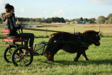 Wegens aanschaf grotere sulky helaas te koop. Heb hem zo'n 2 jaar in mijn bezit gehad waarvan misschien maar een jaar gebruikt i.v.m overlijden pony. Bruine pony op de foto is 80/85cm en schimmeltje is 1.06. Pony's van 75cm t/m 90cm passen er het beste voor, groter gaat ook maar dan word het lastiger om de sulky in evenwicht te krijgen. Sulky wordt verkocht inclusief zweephouder, 2 paar voorstukken (voor het korter/langer maken van het lamoen) en kort geleden zijn de binnenbanden nog vervangen. Pony van 80/85cm rijd met de kortere voorstukken en pony van 1.06 met de lange (bomen worden in het totaal 135cm en 150/160, kan ik nog even nameten voor de zekerheid). Spoorbreedte etc weet ik niet uit mijn hoofd, maar de 110cm voor de vaardigheid red hij in ieder geval niet.