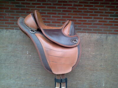 Nette kunststof boomloos zadel 14 inch, 2 singelstoten. Past in principe op alle paarden en pony's. Exclusief beugels en singel.