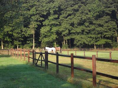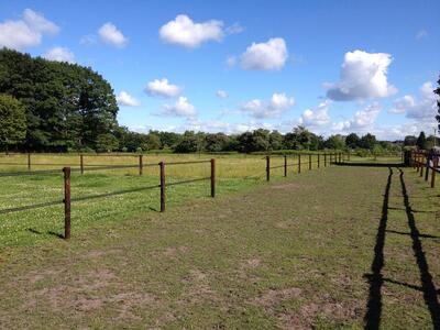 Het land ligt op een heel rustige plek, en is natuurlijk beschut door bos. De uitrijmogelijkheden zijn geweldig, we liggen namelijk direct aan de Veluwe Trail. Momenteel werken wij aan een roundpen, die halverwege de zomer klaar zal zijn.