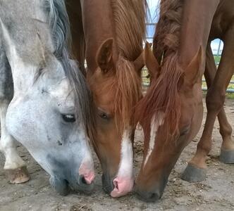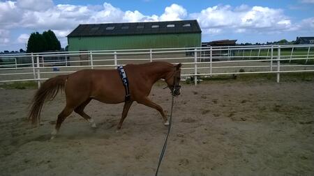 Helaas springt hij de laatste tijd wel eens op mijn merries en dat vind ik geen succes (de dames hebben er niet eens zo'n moeite mee ;-) ). Ik denk dat hij zich gewoon verveelt, aan het werk moet. Hij is heel sociaal, past bij alle paarden, is verder echt niet vervelend. Hij is gewoon een jonge ruin die wil spelen. Dat is wel de reden waarom ik hem nu echt wil verkopen (hij heeft eerder te koop gestaan maar dat heb ik niet doorgezet), in combinatie met het feit dat hij niet in tweespan past plus ik hem zelf niet durf door te beleren.