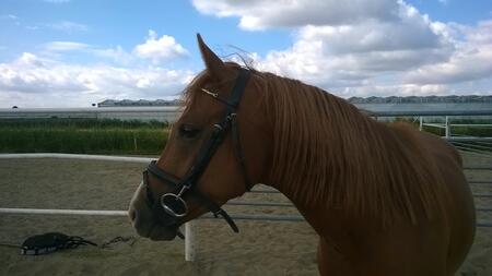 Ik zoek een goed huis voor hem, bij iemand met gevoel voor paarden (hij is 3/4 arabier, daar moet je mee om kunnen gaan) en de tijd plus ruimte voor het beleren van een jong dier. Dat is het allerbelangrijkste voor me.