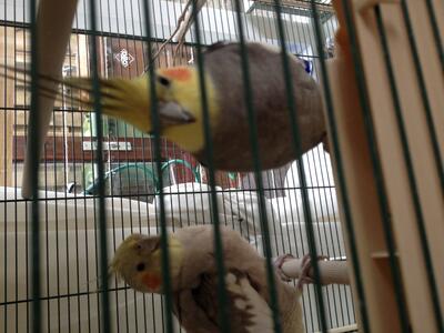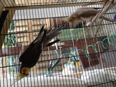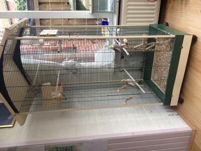 De kooi waar ze nu inzitten krijgt u er ook bij tenzij u die niet nodig heeft. alle wat er inhangt en zelfs nog wat voer mag ook mee.