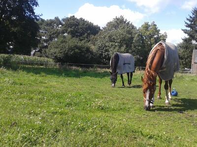 Bij verhuur van de kamer is het ook mogenlijk om paarden/pony’s mee te nemen. In principe is er nog één stal beschikbaar. Ook is er een ruime schuilstal, 2 weides & een rijbak op het terrein aanwezig.