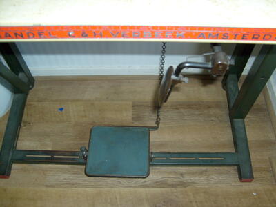 Een naalds naaimachine in zeer goede staat, met voetpedaal en in eigen tafel. Moet door verhuizing weer even afgesteld. Loop super.