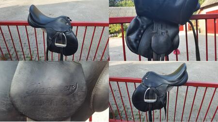 Info: Fijn springzadel in goede staat. De beugels zijn zowel onder als boven het zweetblad te gebruiken. Zadel wordt verkocht inclusief beugels en riemen