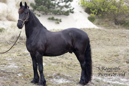 Peer is een 9 jarige friese ruin van 1.63 hoog. Zijn vader is Ulke 338 en mv is Teake. Ik heb hem op 2,5 jarige leeftijd gekocht van de fokker en zelf beleerd en ken hem dus door en door.
