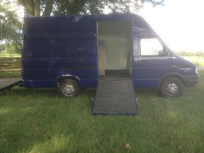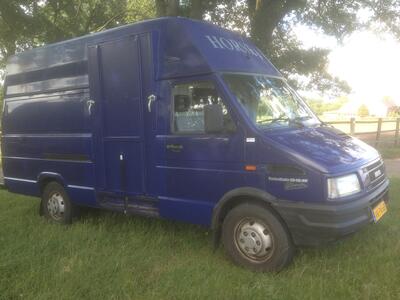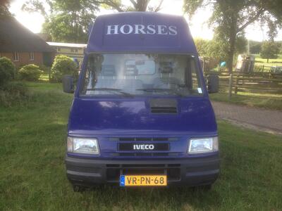 Deze laag gebouwde Iveco daily is voorzien van 2 zeer licht te bedienen laadkleppen, de paarden kunnen vanaf zijkant geladen worden, en er achter weer uit. Ook is het mogelijk om de paarden te laden en ontladen zoals bij een paardentrailer dus dmv de achterklep.