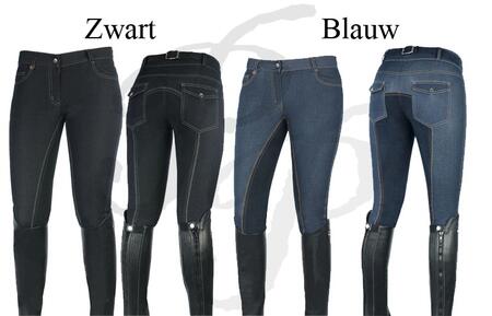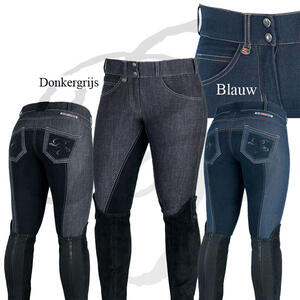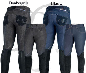 Denim rijbroek nu met rekbaar suède afwerking op de zakken en een betere pasvorm.