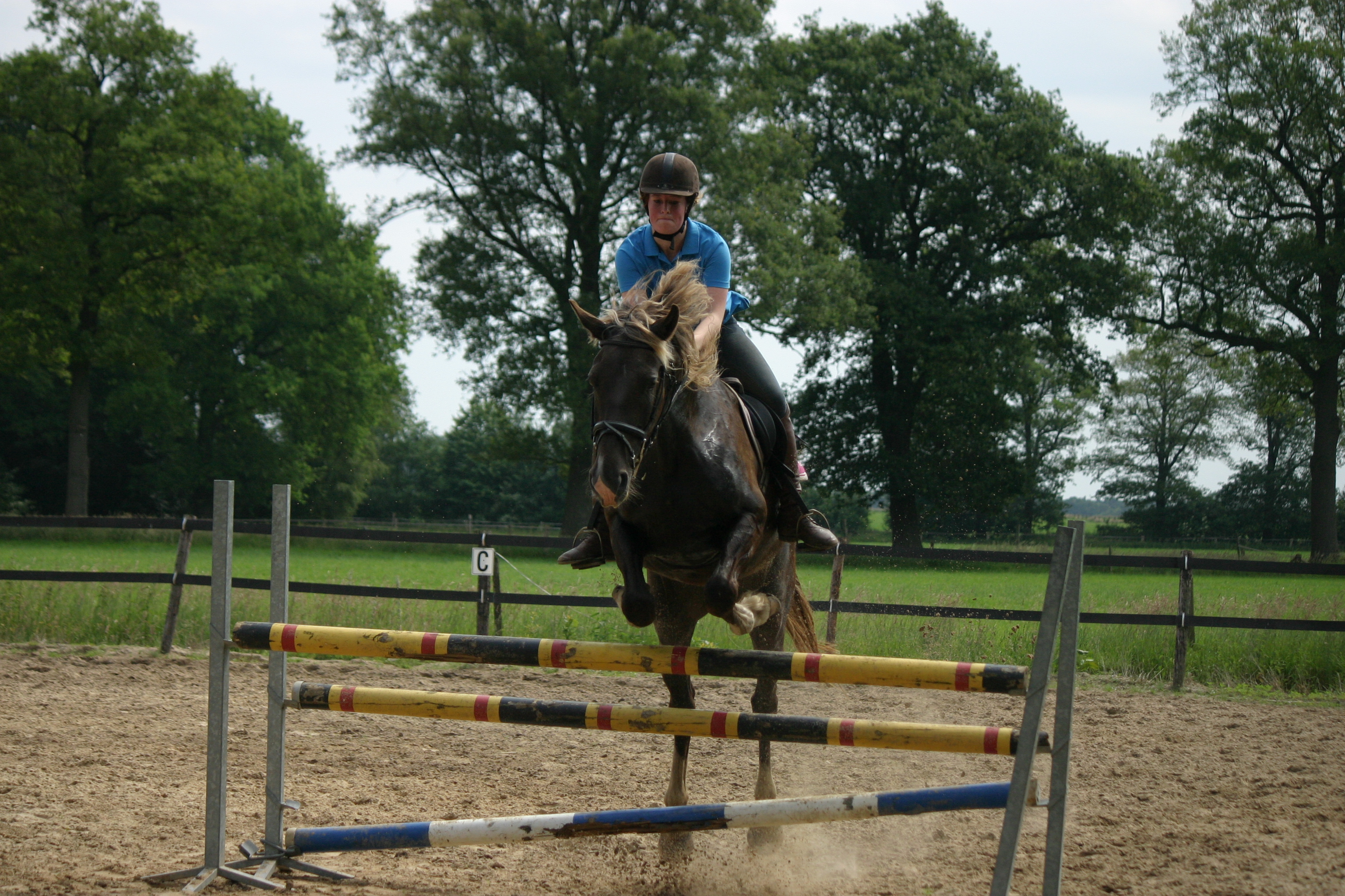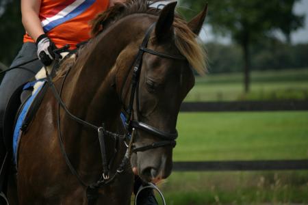 Roos is een merrie met een heel eigenzinnig karakter, en is daarom zeker niet geschikt voor beginners. Als je haar vertrouwen hebt gewonnen, gaat ze voor je door het vuur! In de bak werken vind ze niet zo heel leuk, een sprongetje daarintegen wel! Maar je moet haar wel even goed doorpakken, daarom zoek ik ook iemand die daarmee om kan gaan. Verder mag je eigenlijk gewoon alles met haar doen, in overleg kan heel erg veel! Roos staat op een hele gezellige stal tussen Markelo en Goor, in volpension dus het enige bijhorende klusje wat je hebt is om haar even te voeren na het rijden. Ik vraag geen vergoeding, het enige wat ik vraag is een lieve eerlijke ruiter!