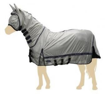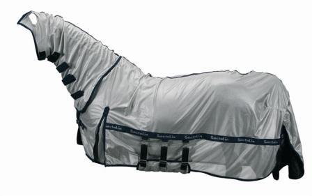 De Sectolin vliegendeken Combo is gemaakt van een zachte nylon gaasstof en is vanaf de borst tot de loopssplitten geheel voorzien van nylon om het doorschuren van de huid tegen te gaan. De vliegendeken wordt compleet geleverd inclusief vaste hals en een los vliegenmasker.