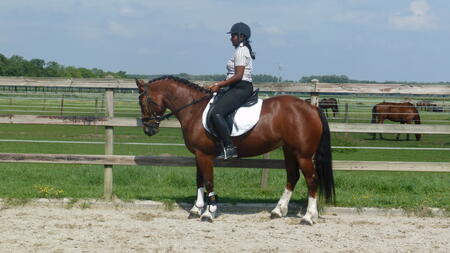 Nora is een super lieve merrie waar je alle kanten mee uit kunt.