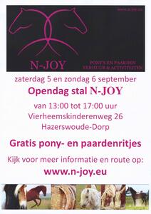 Op zaterdag 5 en zondag 6 september tussen 13.00 uur en 17.00 uur, opent Stal N-JOY haar deuren en houden wij opendagen!