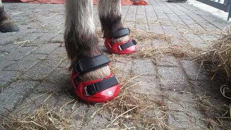 Gaan weg omdat mijn paardje ze niet meer nodig heeft, zijn maximaal 10 a 15 keer gebruik en altijd in het bos. Altijd goed blijven zitten, nooit gedraaid of verloren. Idiaal als vervanging van ijzers bij het rijden/mennen.