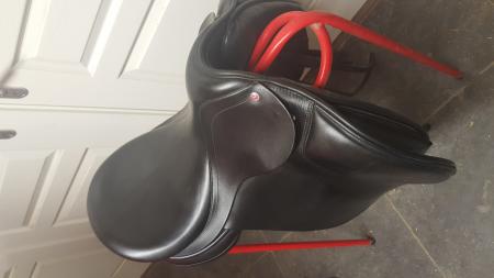 Mooi, goed onderhouden, in super staat 17,5” dressuurzadel aangeboden van het Zadelatelier (Ninon Schutte).