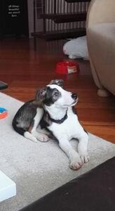 Rafael ligt graag bij je, speelt graag en leert momenteel lopen aan de lijn. Dit gaat erg goed; hij leert snel. Mee in de auto is geen probleem. Hij slaapt in de bench en is dan ook rustig. Zijn vaste plekje in huis is dan ook de bench, hij ligt hier graag in. Het alleen thuis zijn moet nog opgebouwd worden.