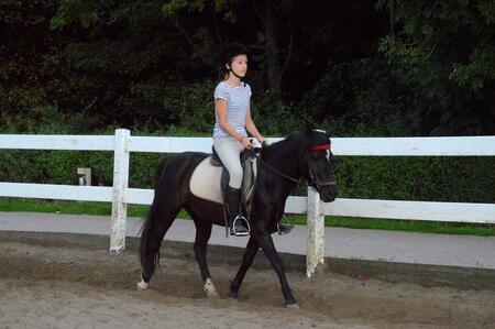Zoë rijd 4,5 jaar paard weegt 43 kilo en is 1,58m, Roos rijd 6,5 jaar paard weegt 57kg en is 1,73m