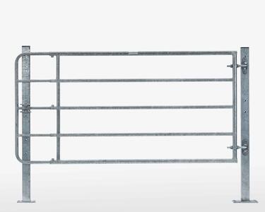 2 banen Beo-band, 12 palen kleur grijs 9x9x200cm, bevestigingsstrips, stalen hek met bijbehorend beslag.